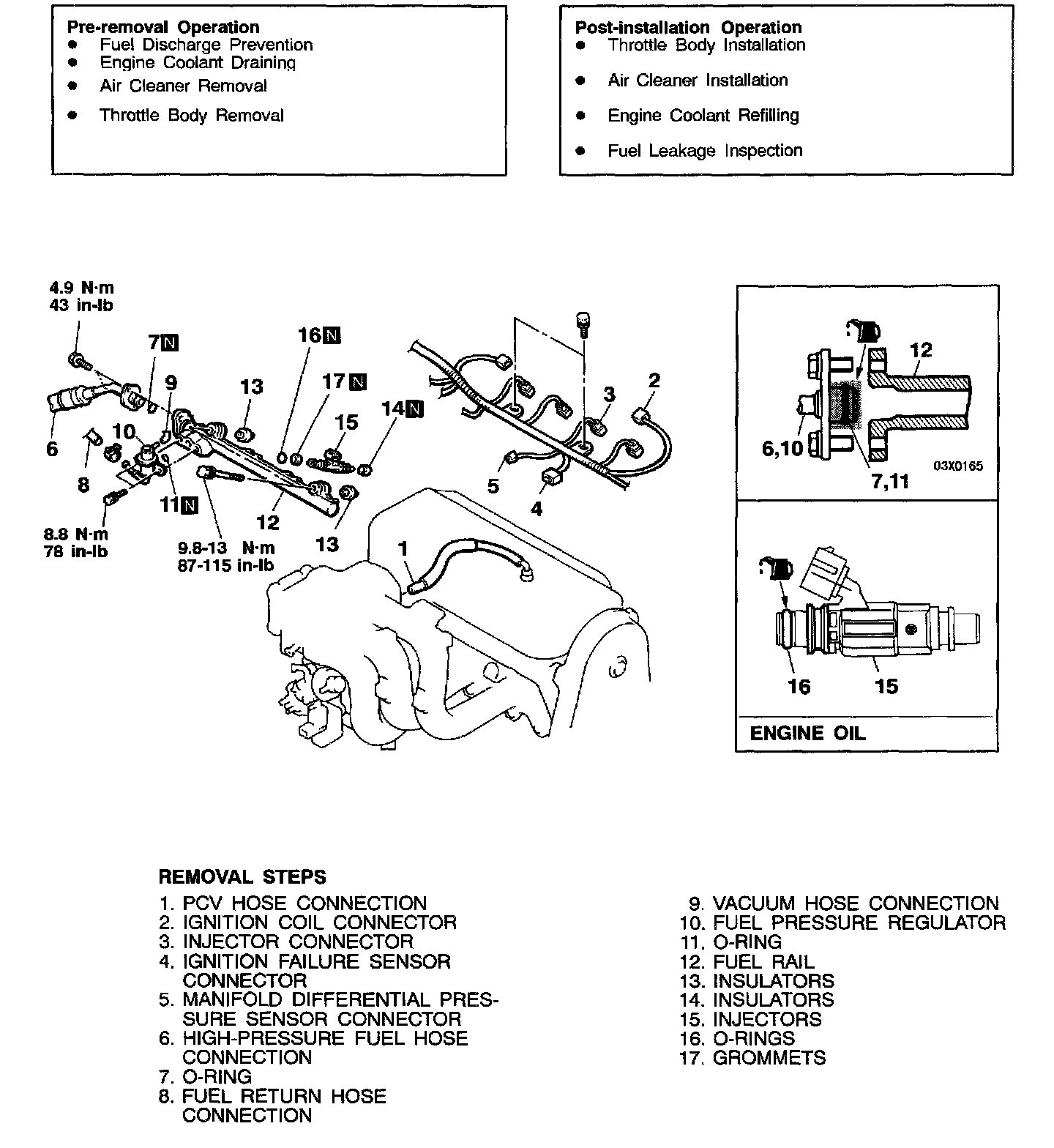 CAUTION: Do not let the engine oil get into the fuel rail will be damaged.