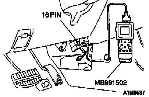 CAUTION: To prevent damage to scan tool MB991502, always turn the ignition switch to "LOCK" (OFF) position before connecting or disconnecting scan tool MB991502.