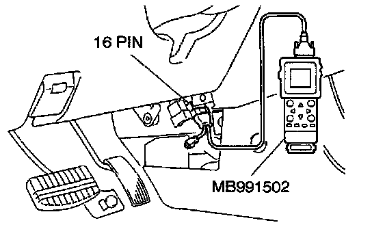 4. Connect scan tool MB991502 to the data link connector.