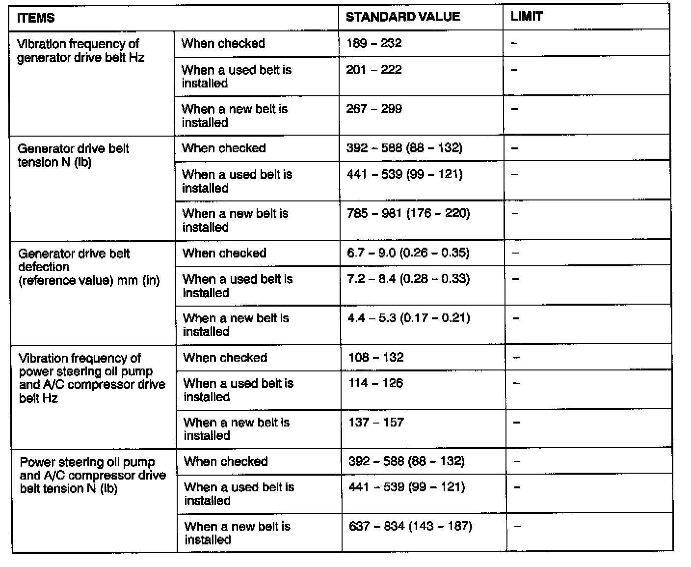Engine-On Vehicle Service Specifications