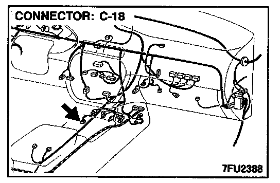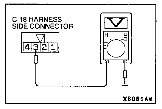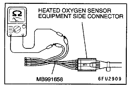 1. Disconnect heated oxygen sensor (front) connector C-18 and connect test harness special tool, MB991658, to the connector on the heated oxygen sensor (front) side.