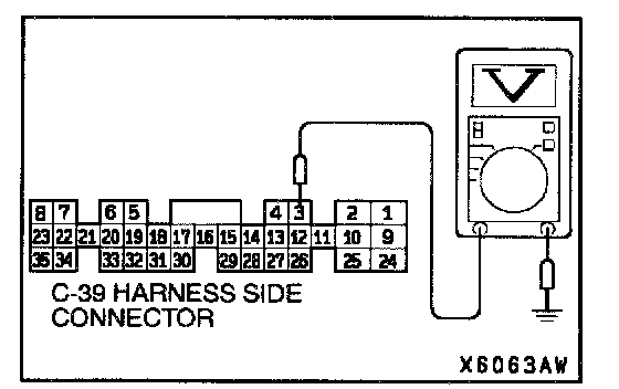 STEP 6. Check the terminal voltage at PCM connector C-39.