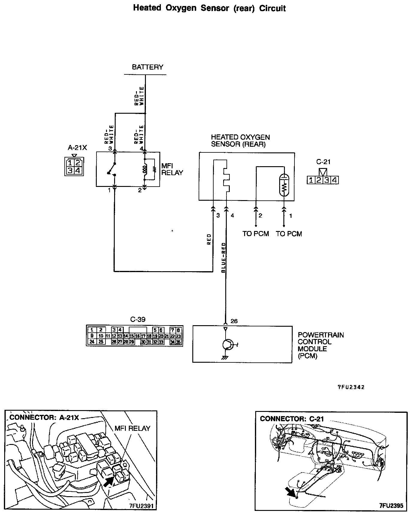 STEP 2. Check the power supply line at heated oxygen sensor (rear) connector C-21.