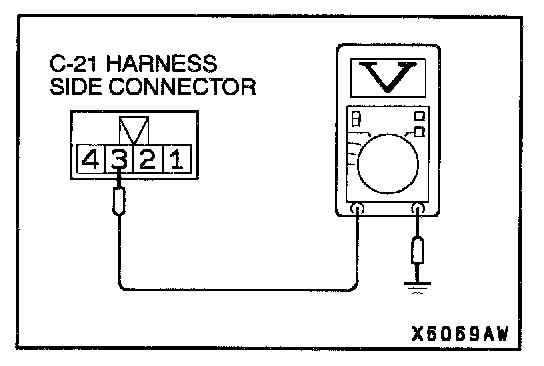 1. Disconnect connector C-21 and measure at the harness side.