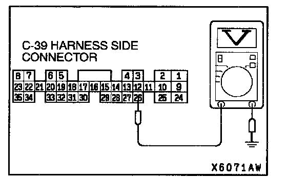 STEP 6. Check the terminal voltage at PCM connector C-39.