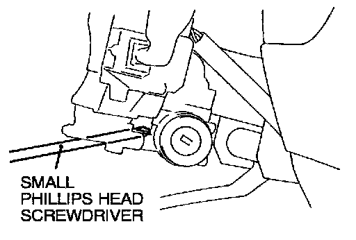 2. Using a small phillips head screwdriver, pull the steering lock cylinder toward you.
