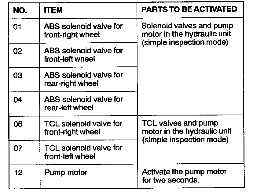 - If the ABS-ECU is inoperative, actuator testing cannot be carried out.