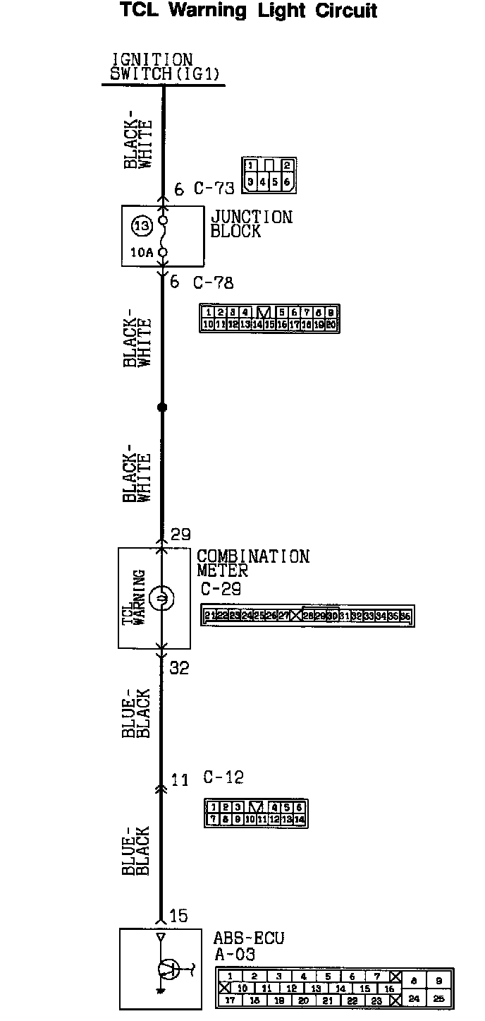- The ABS-ECU illuminates the TCL warning light on start-up. If turns the light off after 3 seconds when the ABS-ECU completes the self-check.