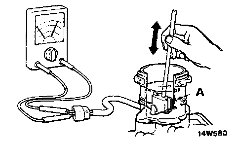 BRAKE FLUID LEVEL SENSOR CHECKThe brake fluid level sensor is in good condition if there is no continuity when the float surface is above "N" and if there is continuity when the float surface is below "A."