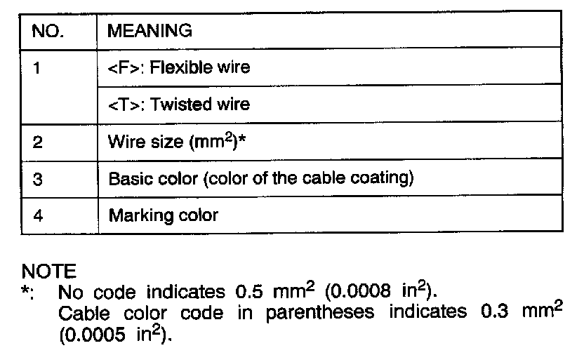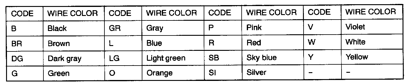Wire colors are identified by the following color codes.