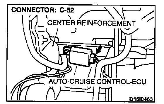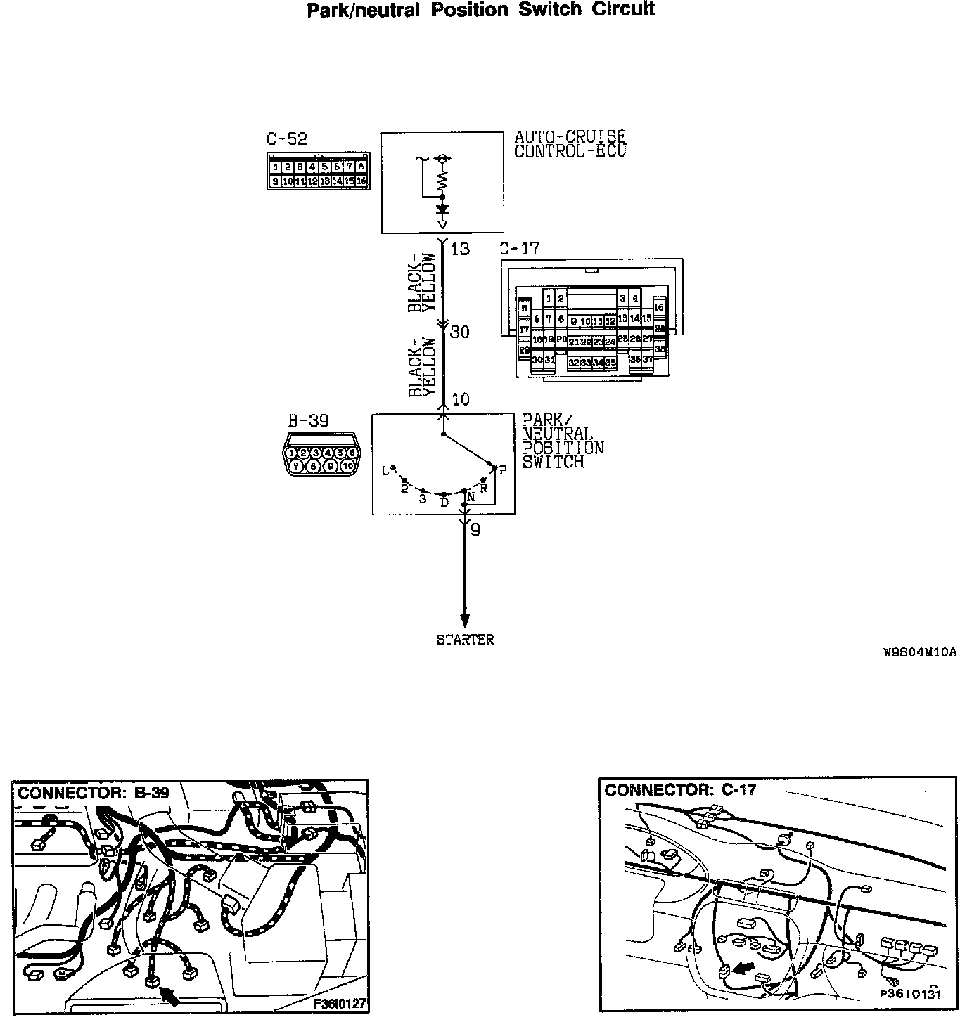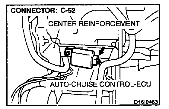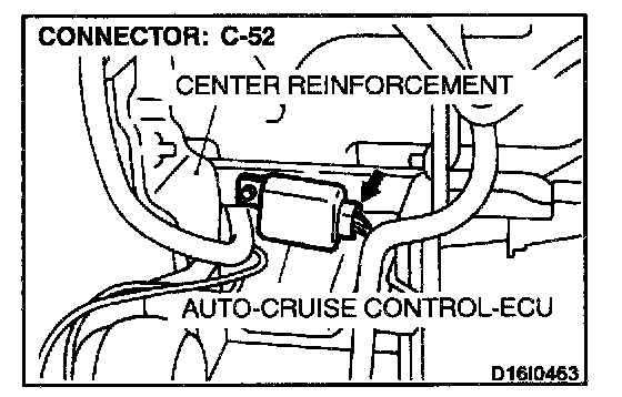 STEP 2. Check harness connectors B-39 at the park/neutral position switch and C-52 at the auto-cruise control-ECU for damage.