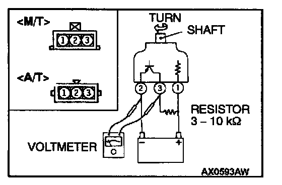 1. Remove the vehicle speed sensor and connect a 3 - 10 kOhms resistor as shown in the illustration.