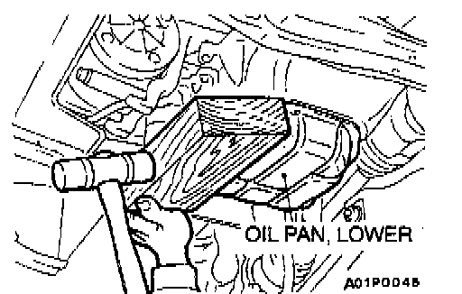 CAUTION: Using an oil pan remover (MD998727) can damage the oil pan, upper (aluminum made).