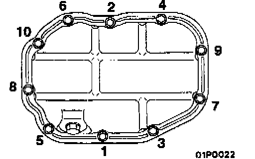 Tighten the oil pan, lower mounting bolts in the order illustrated.
