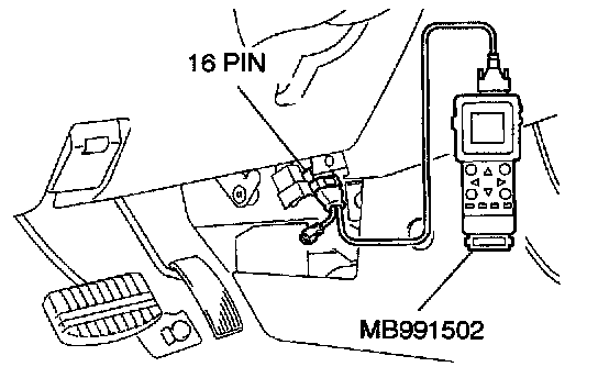 STEP 2. Using scan tool MB991502, read the diagnostic trouble code (DTC).