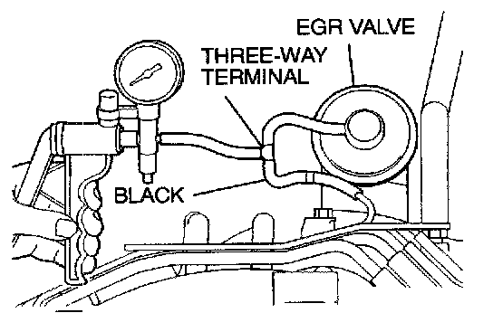 EGR SYSTEM CHECK1. Disconnect the vacuum hose (black) from the EGR valve, and then connect a hand vacuum pump via the three-way terminal