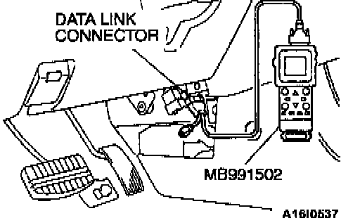1. Connect scan tool MB991502 to the data link connector.