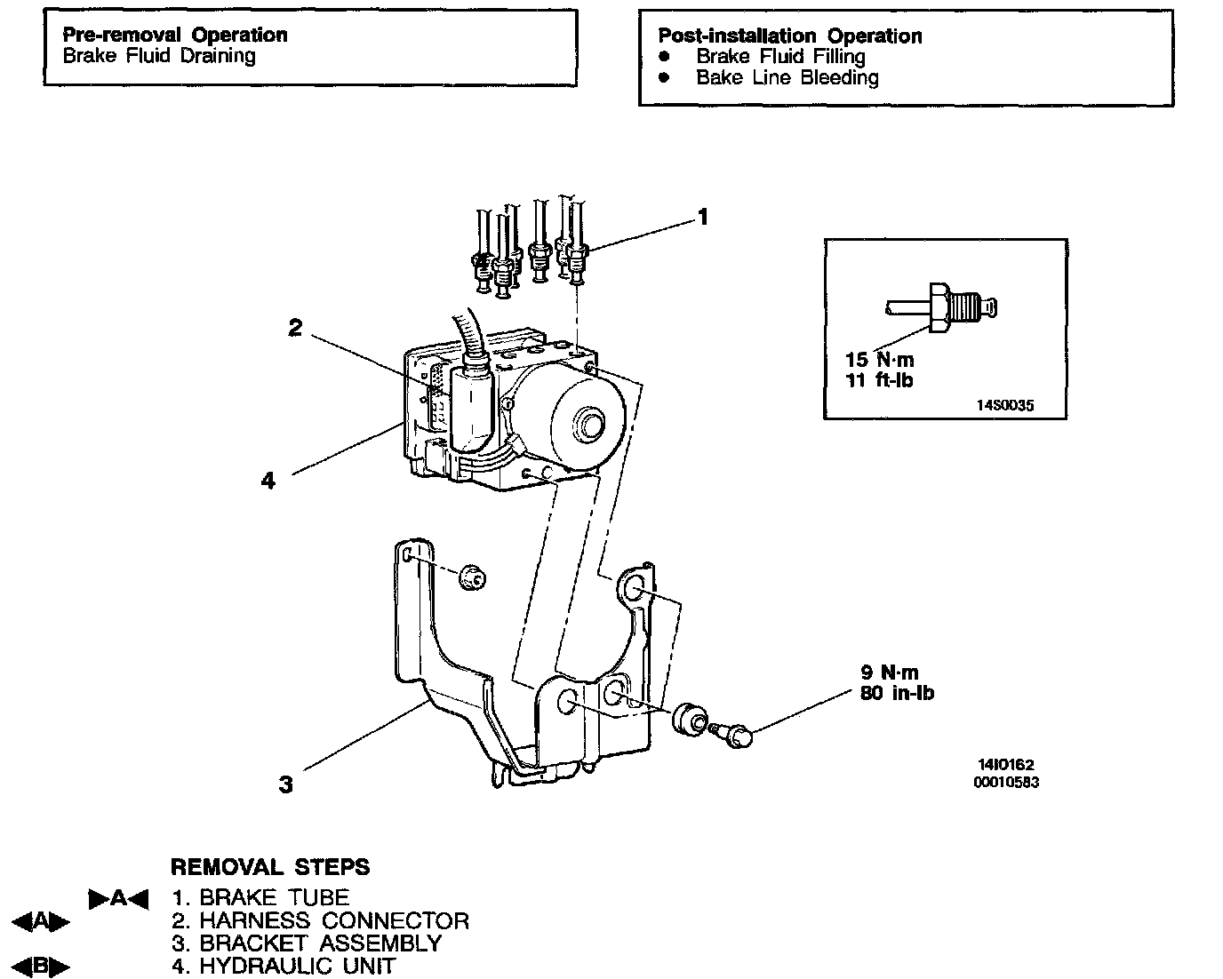 CAUTION: The hydraulic unit cannot be disassembled. Never loosen its nuts or bolts. Do not drop or shock the hydraulic unit. Do not turn the hydraulic unit upside down or lay it on its side.