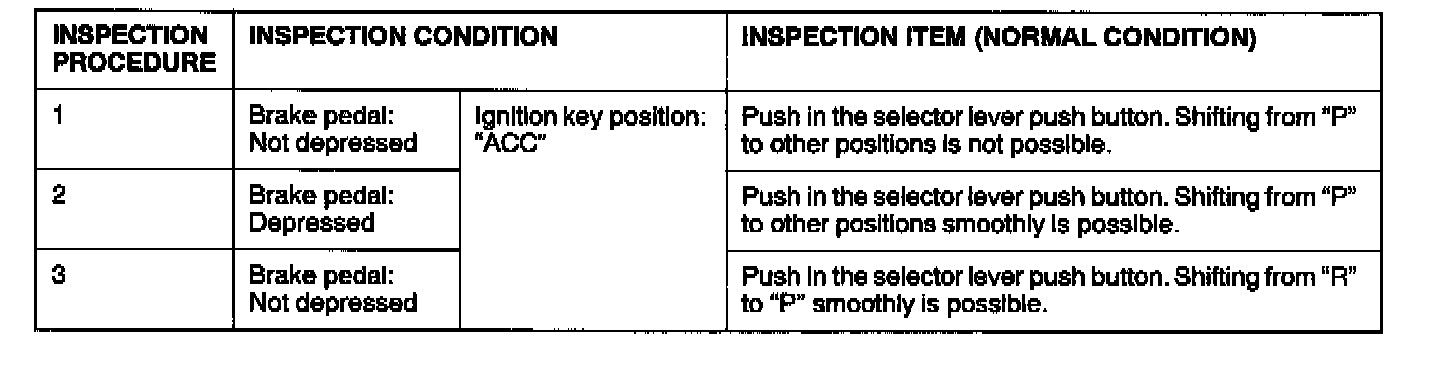 SHIFT LOCK MECHANISM CHECK1. Carry out the following inspections.