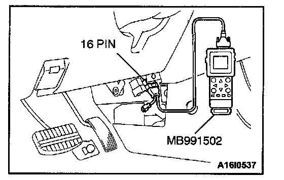 1. Connect scan tool MB991502 to data link connector (16 pin).