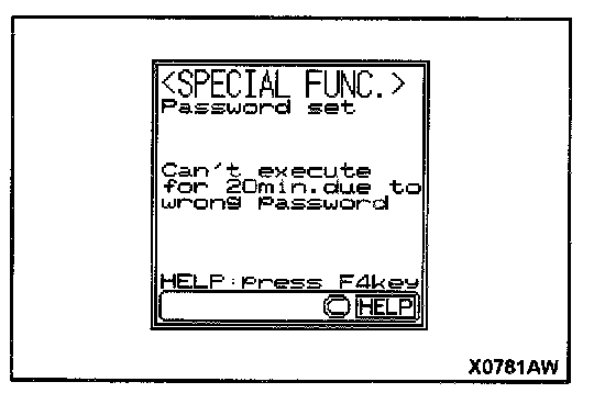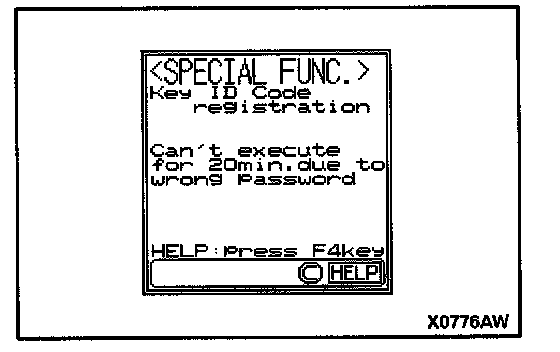 3. If an incorrect password is input five times in a row, this screen is displayed and the immobilizer-ECU switches to "Unauthorized operation, start-prevention mode."