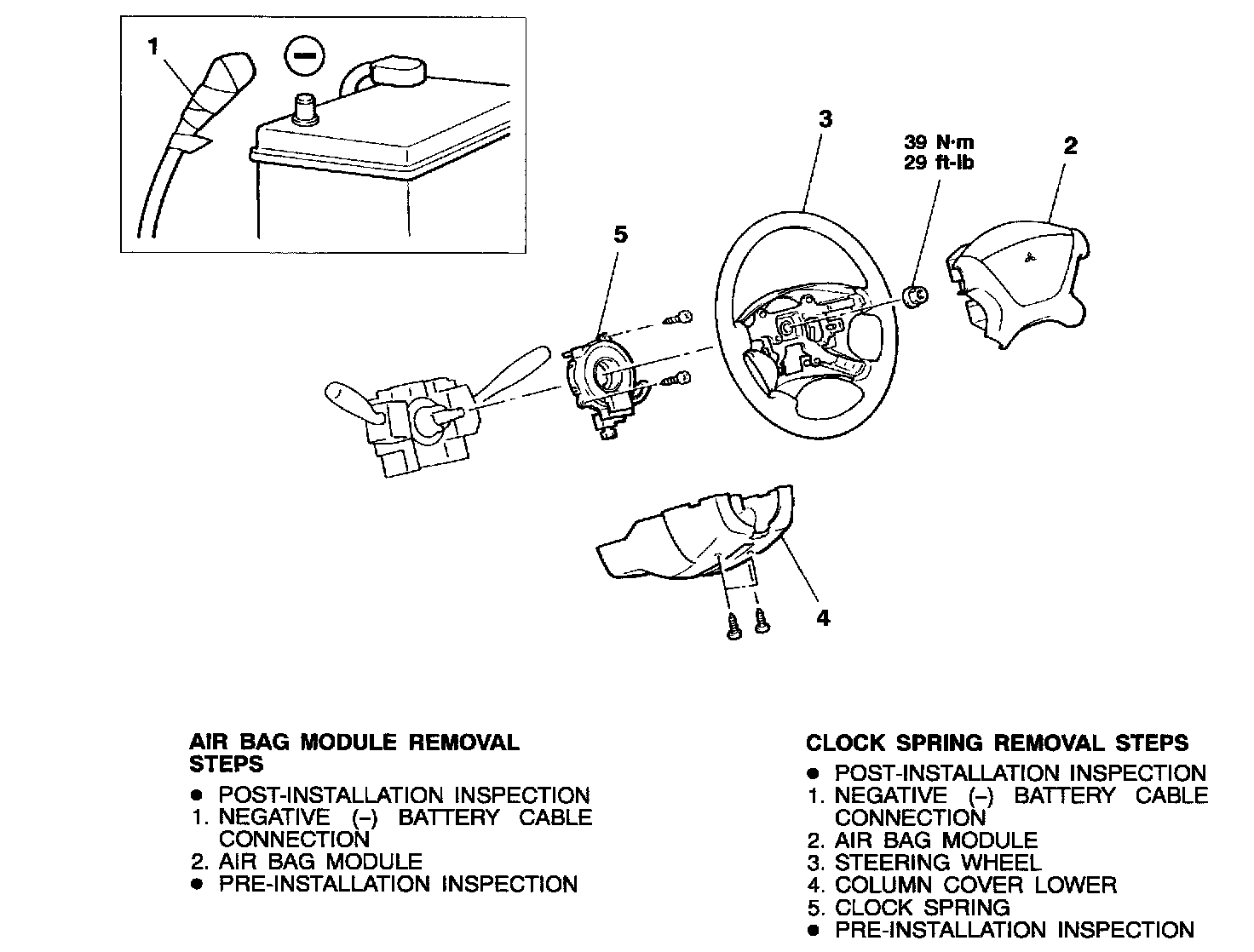WARNING:- Never attempt to disassemble or repair the air bag modules or clock spring. If faulty, replace it.