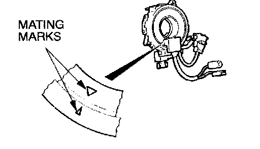WARNING: Ensure that the clock spring's mating marks are properly aligned. If not, the steering wheel may not rotate completely during a turn, or the flat cable in the clock spring could be damaged. This would prevent normal SRS operation and possibly cause serious injury to the driver.