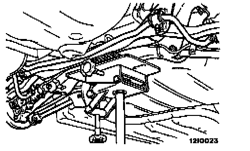 Support the crossmember with a garage jack or transmission jack to remove the crossmember mounting nut.