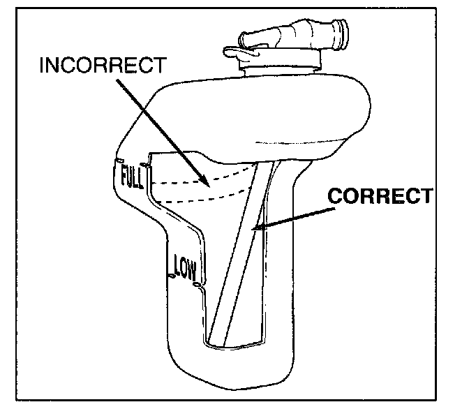 The symptoms described in this bulletin may be caused by an incorrectly positioned internal hose in the coolant reservoir tank. The condition can be identified by visualty checking for a dark shadow on the upper front side of the tank.