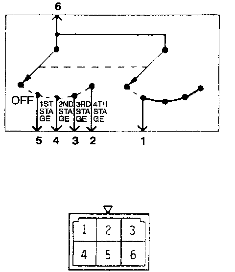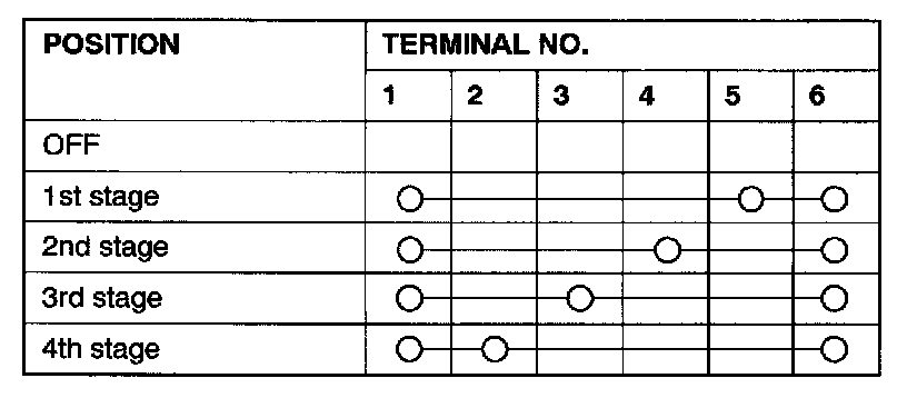 This figure illustrates a complex switch. The continuity between terminals at each position is as indicated in the table below.