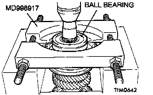 1. Using special tool MD998917, support the ball bearing, and then set them on the press.