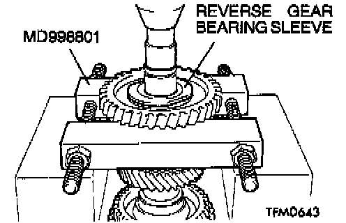 1. Using special tool MD998801, support the reverse gear, and then set them on the press.