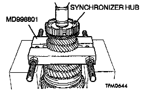 1. Using special tool MD998801, support the 4th speed gear, and then set them on the press.