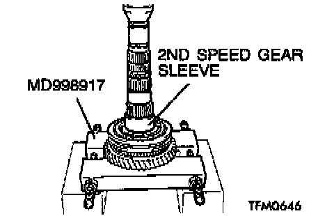 1. Using special tool MD998917, support the 2nd speed gear, and then set them on the press.