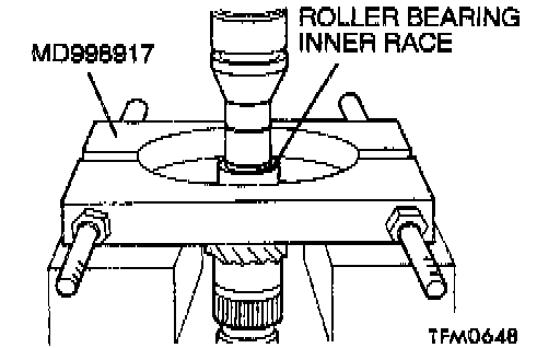 1. Using special tool MD998917, support the roller bearing inner race, and then set them on the press.