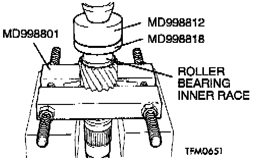 2. Using special tools MD998812 and MD998818, press install the roller bearing inner race with the press.