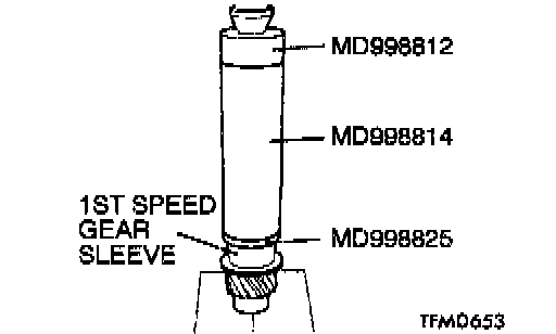 2. Using special tools MD998812, MD998814 and MD998825, press install the 1st speed gear sleeve with the press.