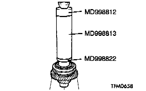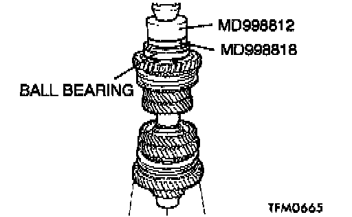 2. Using special tools MD998812 and MD998818, press install the ball bearing.