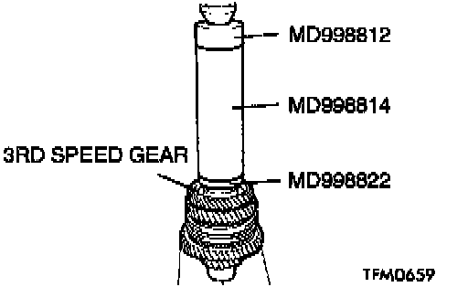 2. Using special tools MD998812, MD998814 and MD998822, press install the 3rd speed gear onto the output shaft.