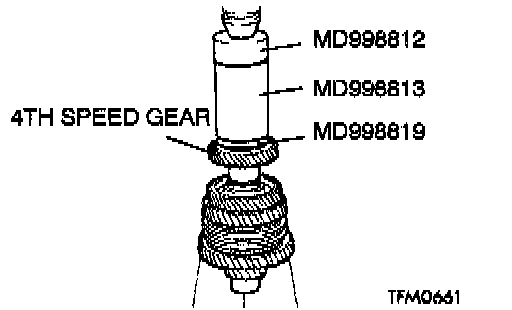 2. Using special tools MD998812, MD998813 and MD998819, press install the 4th speed gear onto the output shaft.