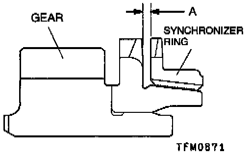 3. Force the synchronizer ring toward the clutch gear and check clearance "A." If "K is less than the limit, replace.