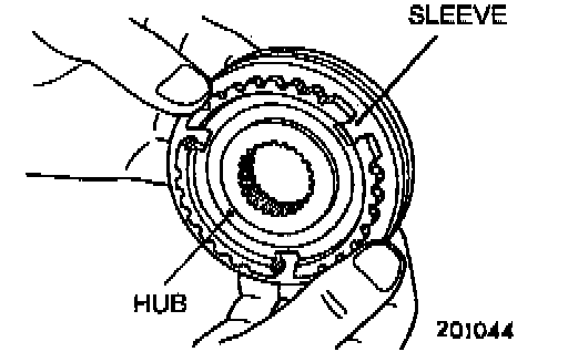 1. Combine the synchronizer sleeve and hub, and check that they slide smoothly.