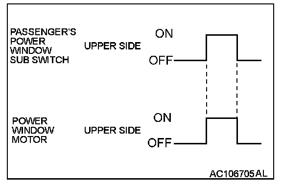 When the power window sub switch is pulled up, the system energizes its respective power window motor, and then passenger's window glass rises.