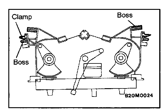 1. Cut off the bosses and clips shown before installing a new heater control assembly.