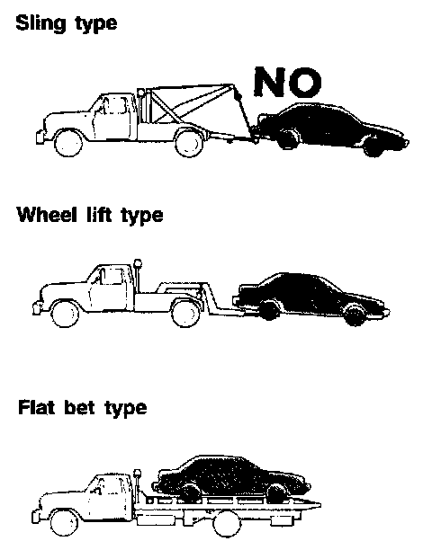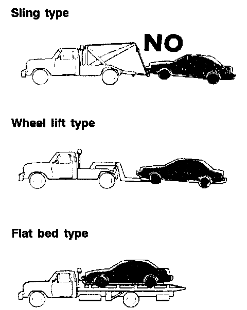 If this vehicle is towed, use wheel lift or flat bed equipment.