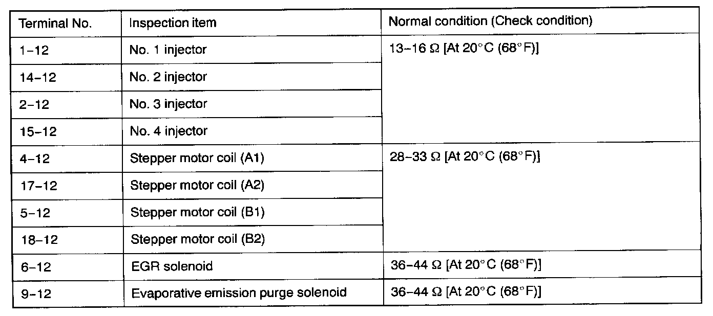 4. If the ohmmeter shows any deviation from the normal condition, check the corresponding sensor, actuator and related electrical wiring, and then repair or replace.