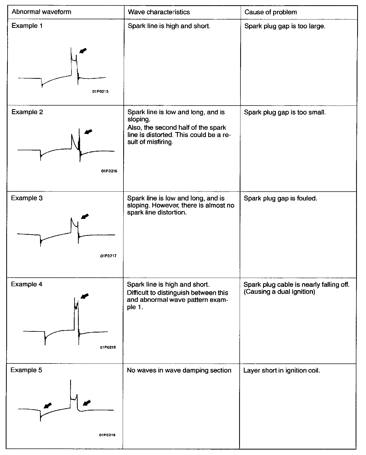 However, wave form observation is only applicable for the cylinder with the spark plug cable clamped by the secondary pickup