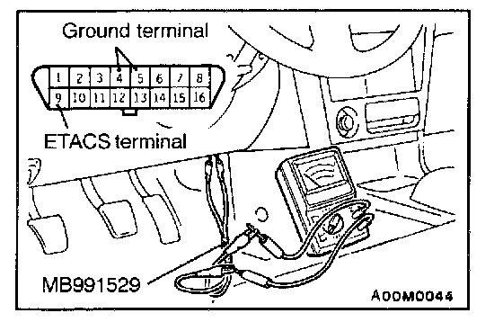 1. Use the special tool to connect a voltmeter between the ground terminal and the ETACS terminal of the data link connector.