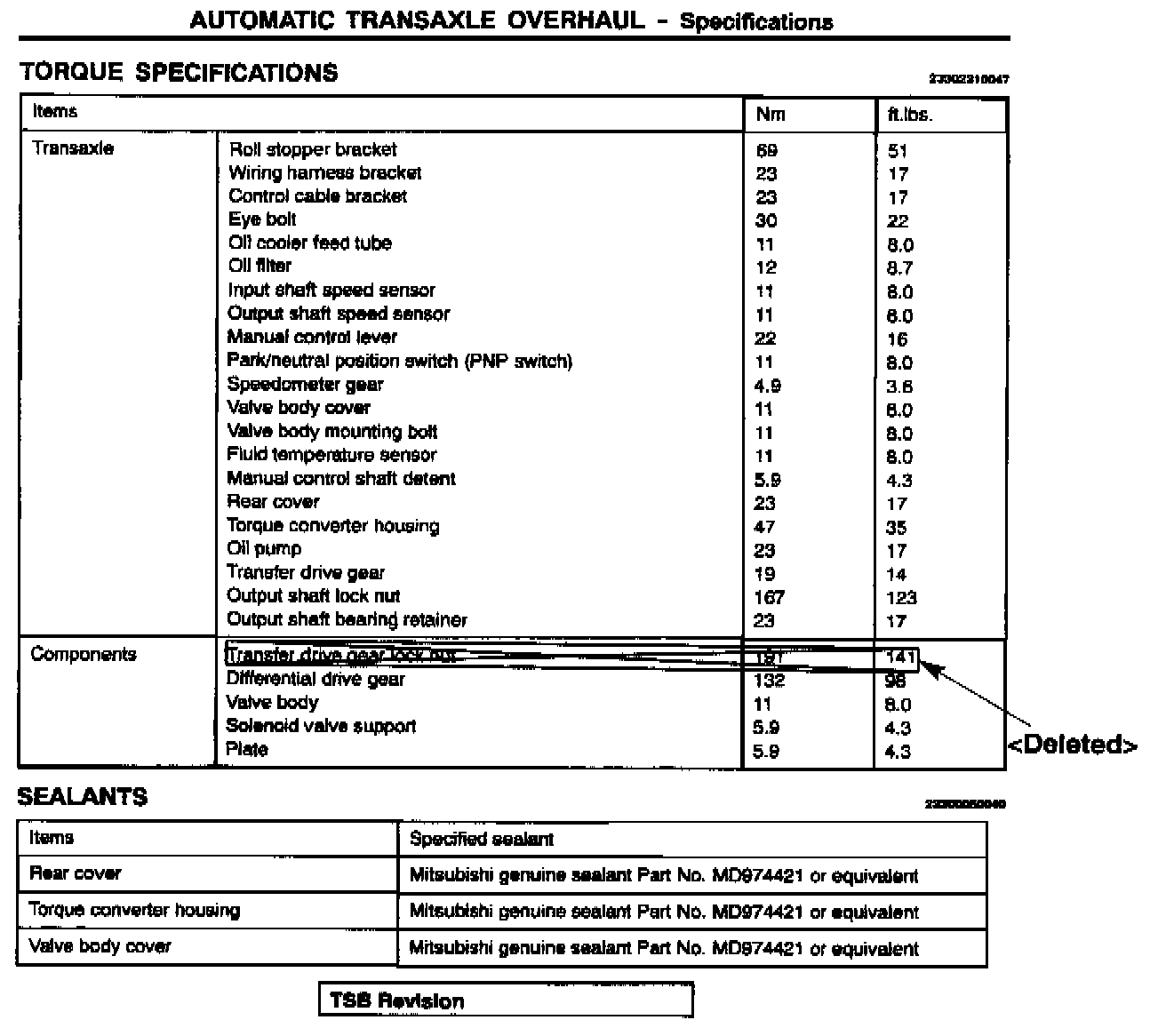 Delete the transfer drive gear lock nut torque specification as shown.