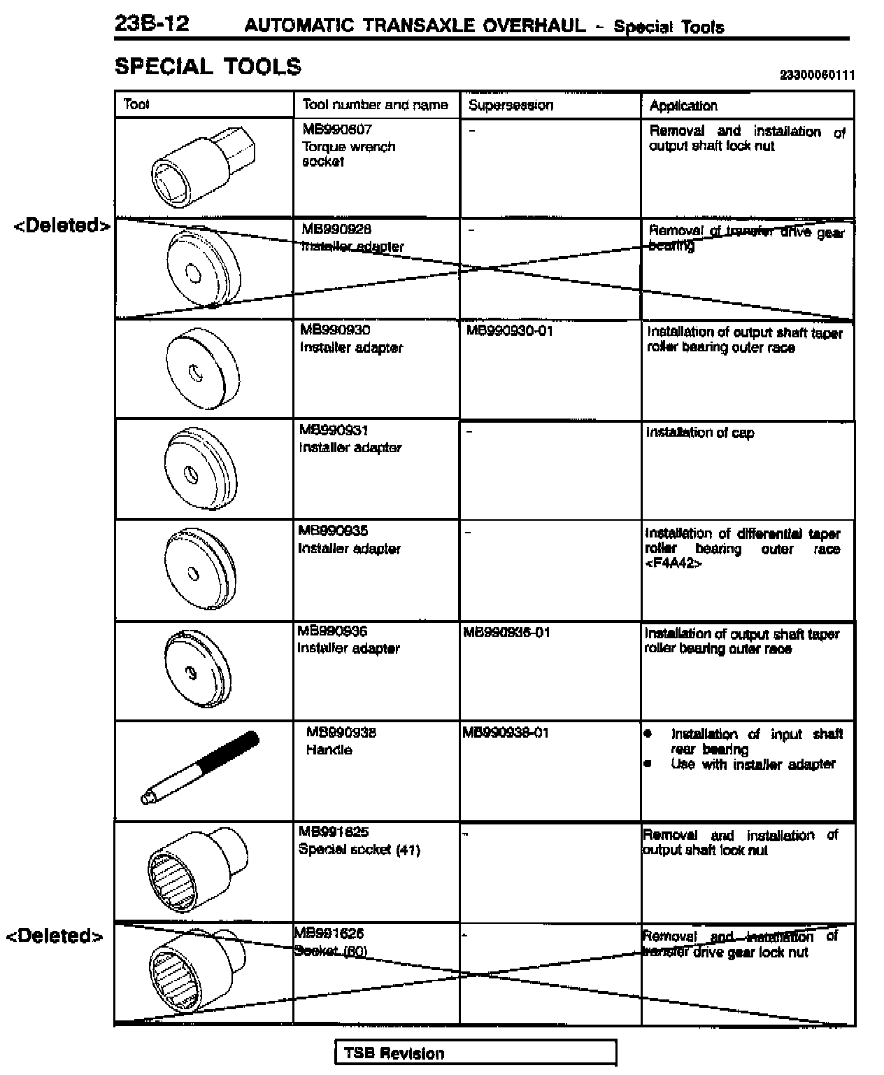 Write the TSB revision number of this bulletin in the "TSB Revision" box at the bottom of the affected service manual page.